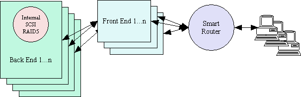 So you might run 4 back end systems, each with 100,000 users, and 2 front end systems. To add more users you just add as many front end and back end servers as needed to cope with the load.